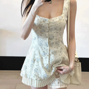 • Приталенное мини-платье без рукавов с цветочным принтом и складками — комплект с шелковистыми шортами