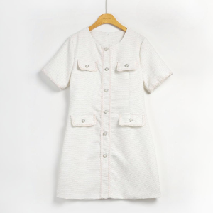Мини-платье из твида с короткими рукавами и жемчужными акцентами