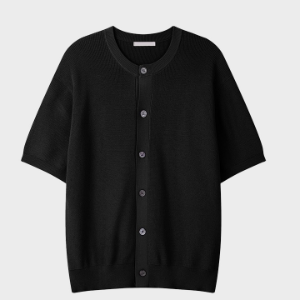 Washable Hacci Round Neck Short-Sleeve Knit Cardigan