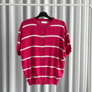 Dangara Boucle Semi Oversized Round Short-Sleeve Cardigan