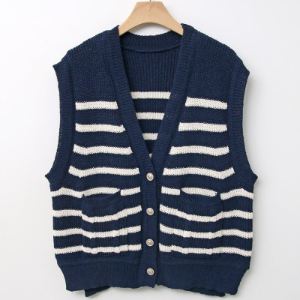 Дизайн горизонтальные полосы в контрастной расцветке, накладные карманы и лаконичный вырез без застёжек