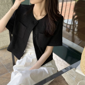 Youngi No-Collar Tweed Short-Sleeve Jacket