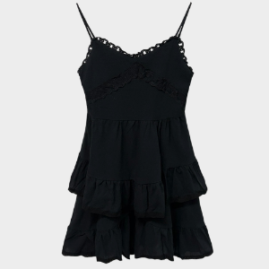 Хлопковое асимметричное миди-платье с кружевом и каскадными оборками