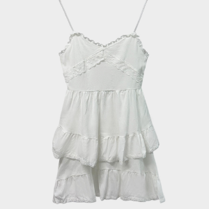 • Хлопковое асимметричное миди-платье с кружевом и каскадными оборками