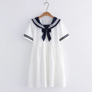 Мини-платье в стиле морской формы с бантом и короткими рукавами
