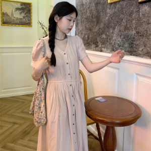 • Макси-платье с V-образным вырезом, плиссировкой и поясом на талии