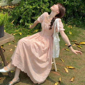 Длинное платье A-силуэта с оборками и бантом
