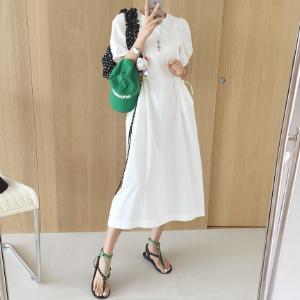 • Лёгкое летнее платье с круглым вырезом, пуффовыми рукавами и карманами