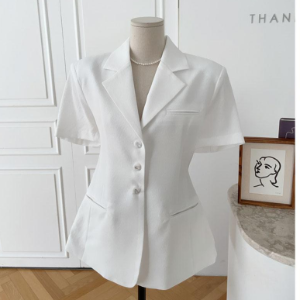 Дизайн классический отложной воротник, подплечники, короткие рукава и однобортная застёжка