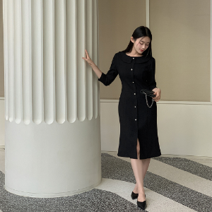 Твидовое платье в клетку с жемчужными пуговицами