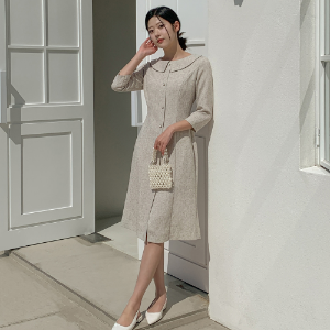 Твидовое платье в клетку с жемчужными пуговицами