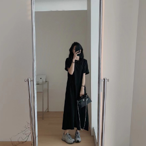 Фемининное чёрное платье с короткими рукавами макси длины