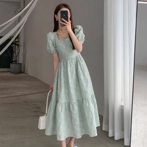 Длинное платье с пышными рукавами в оттенке серебристой мяты