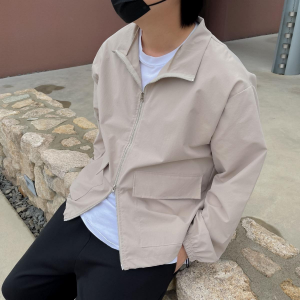 8 seconds Washed Cotton Stand Collar Short Jumper — Beige
