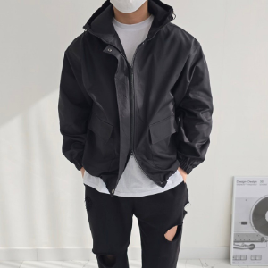 • Men's Oversized 2-Way Hooded Zip-Up Windbreaker Jacket