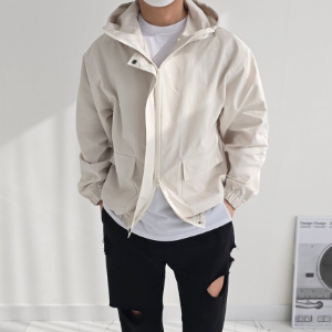 Men's Oversized 2-Way Hooded Zip-Up Windbreaker Jacket