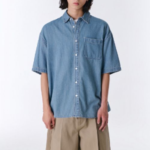 Oversized Short Sleeve Denim Shirt [Light Indigo]