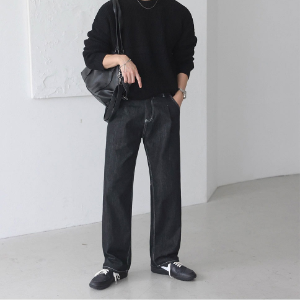 • Pin-Tuck Semi-Wide Non-Fade Raw Denim Pants