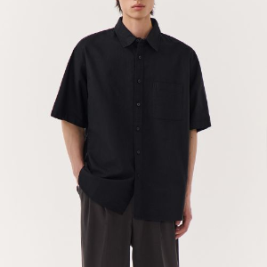 Relaxed Oxford Short-Sleeve Shirt [Black]