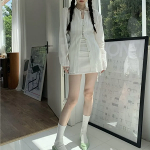 Крой майка — базовая с круглым вырезом, юбка — прямая мини, накидка — свободная, с рукавами