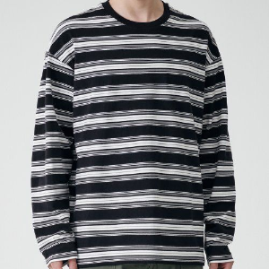 Cluster Stripe Relaxed Long Sleeve T-Shirt 2 [Black]
