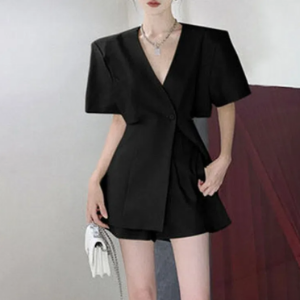 Верх: оверсайз-жакет на одной пуговице, низ: бермуды с завышенной талией и мягкой линией бедра