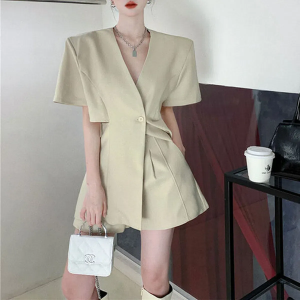 Крой Верх: оверсайз-жакет на одной пуговице, низ: бермуды с завышенной талией и мягкой линией бедра