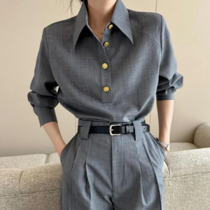 жакет классический с аккуратной посадкой, брюки широкие, высокие
