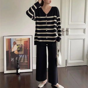 Трикотажный комплект из свободного кардигана и брюк с поясом на резинке
