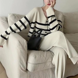 • Трикотажный комплект из свободного кардигана и брюк с поясом на резинке