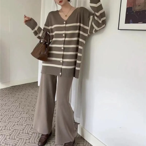 Трикотажный комплект из свободного кардигана и брюк с поясом на резинке