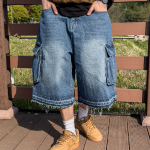 • Faded Vintage Bermuda Cargo Denim Shorts