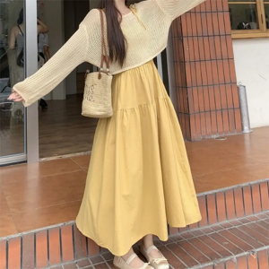 Крой свитер — свободный с заниженной линией плеч, платье — прямое на тонких бретелях