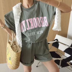 футболка — укороченная, свободная с регулируемым низом на кулиске; шорты — свободные с резинкой на талии