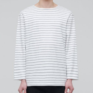 Stripe Boat Neck Long Sleeve T-Shirt [Ivory/Grey]