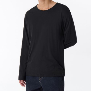 • Relaxed CR Scoop Neck Long Sleeve T-Shirt [Black]