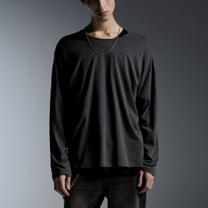 • Relaxed Lightweight CR Scoop Neck Long Sleeve T-Shirt [Gunmetal]