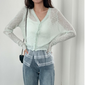 Eyelet Lace Balleco Sheer Long Sleeve Cardigan