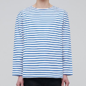 • Stripe Boat Neck Long Sleeve T-Shirt [Ivory/Blue]
