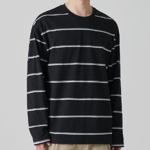 Multi Stripe Relaxed Long Sleeve T-Shirt 2 [Black]
