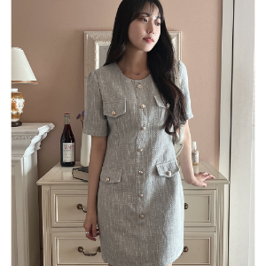 • Мини-платье из твида с короткими рукавами и золотыми пуговицами