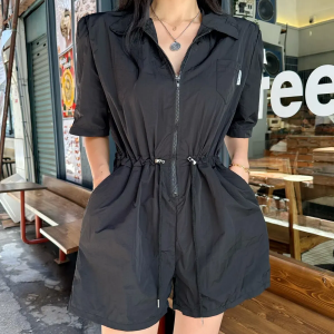 Комбинезон-шорты с воротником, поясом и накладными карманами