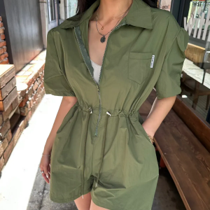 • Комбинезон-шорты с воротником, поясом и накладными карманами