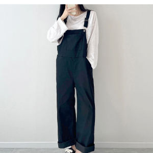 Женский широкий прямой комбинезон с подтяжками из стрейч-ткани