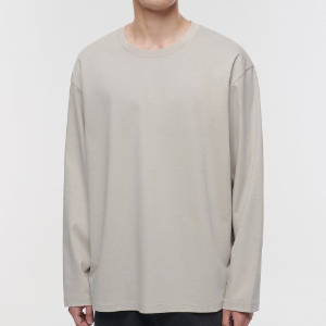 • [Premium] Silket Relaxed Crew Neck Long Sleeve T-Shirt [Dusty Cream]