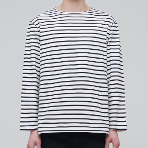 Striped Boat Neck Long Sleeve T-Shirt [Ivory/Black]