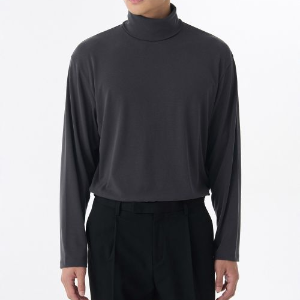 • Relaxed Turtle Neck Knit Long Sleeve T-Shirt [Dark Grey]