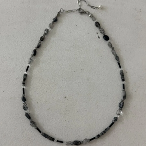 Чёрное колье с дымчатым кристаллом из хирургической стали