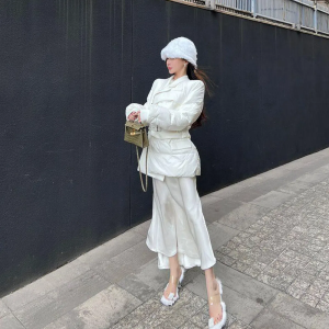 • Slim Cotton Down Belted Jacket