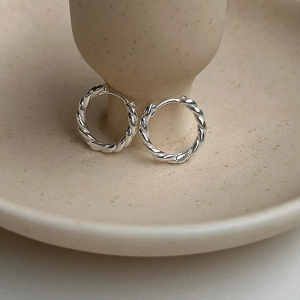 Серебряные мини-серьги-кольца с витым узором и замком one-touch